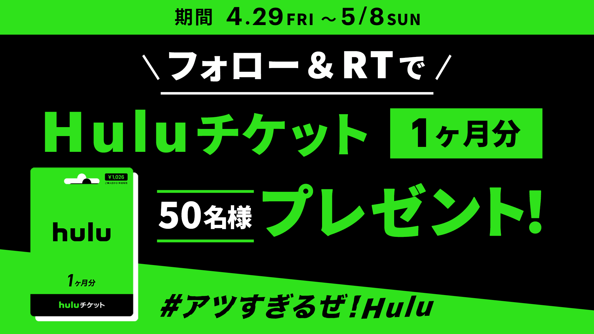 【フォロー&RTで当たる!!】Huluチケットプレゼントキャンペーン実施中