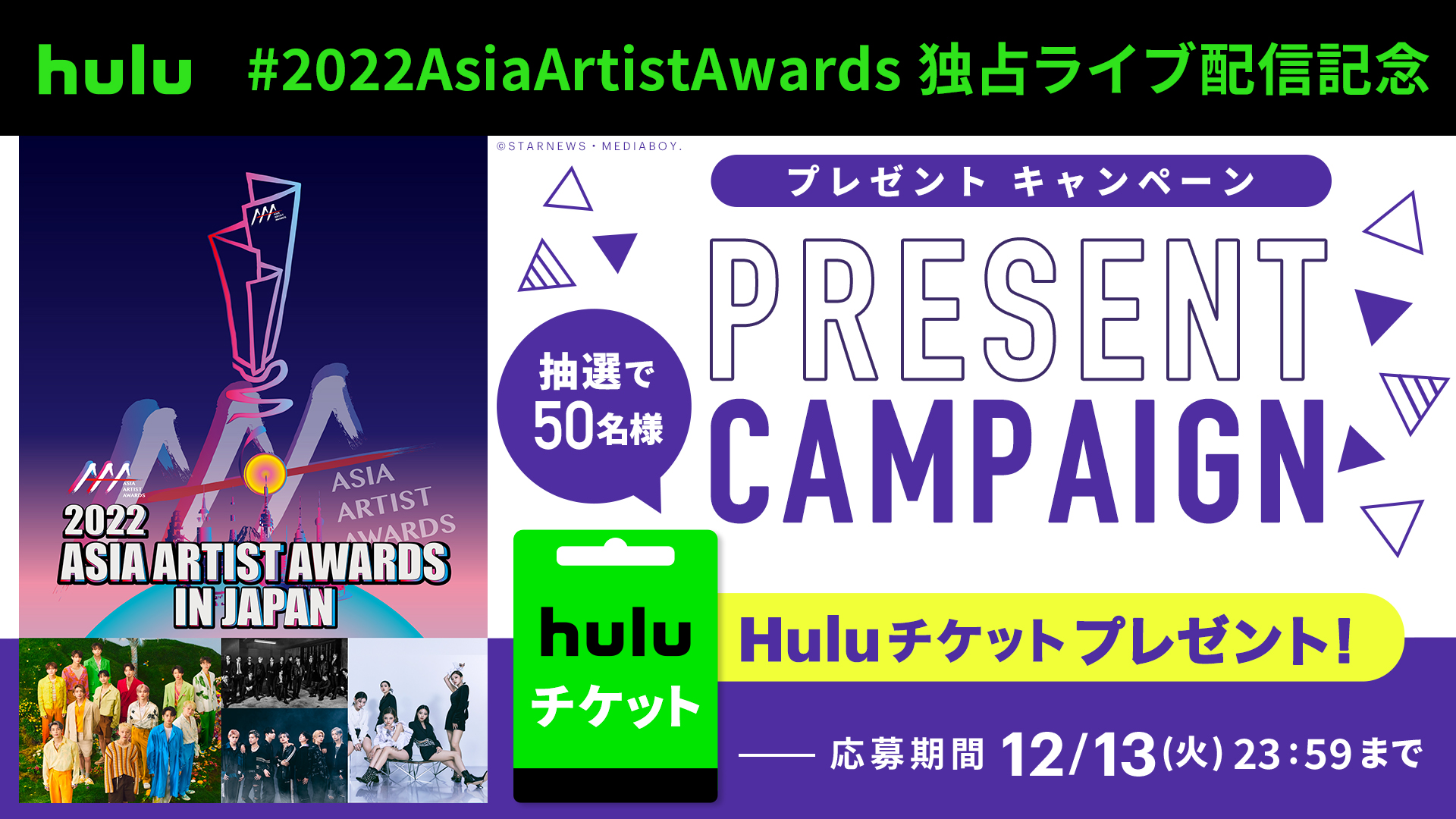 【2022 Asia Artist Awardsライブ配信記念】Huluチケットプレゼントキャンペーン