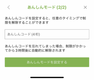 コードを設定しておくことで、保護者の方の同意なしにお子様があんしんモードを解除できないようにロックすることができます。あんしんモード解除時に、コードをご入力ください。