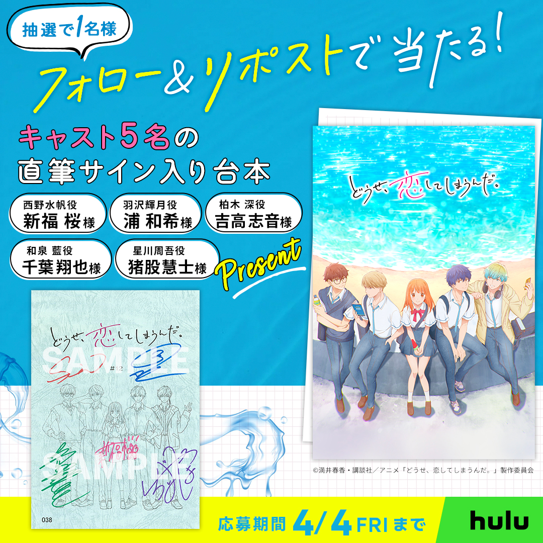Hulu公式Xでキャスト5名のサイン入りポスターが当たるプレゼントキャンペーンを実施中!