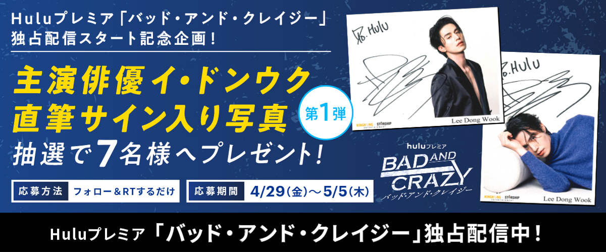 GWと共にスタートする第1弾は主演のイ・ドンウク!Huluの公式Twitterよりご応募ください。