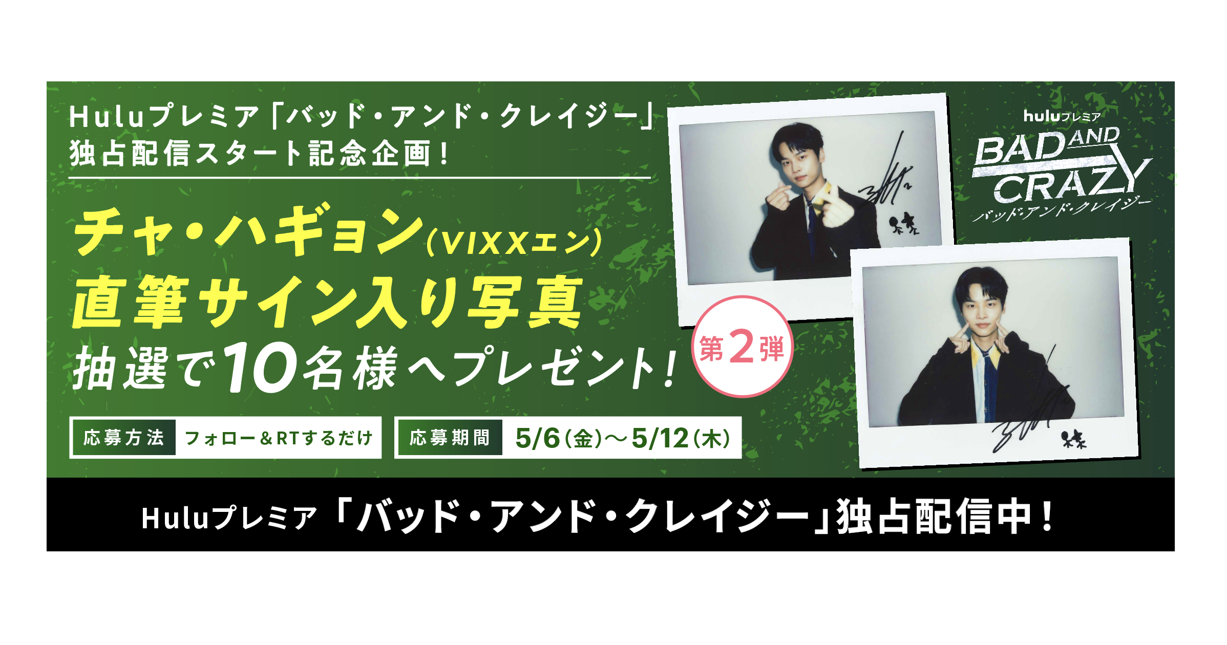 第2弾は出演俳優のチャ・ハギョン(VIXXエン)!Huluの公式Twitterよりご応募ください。