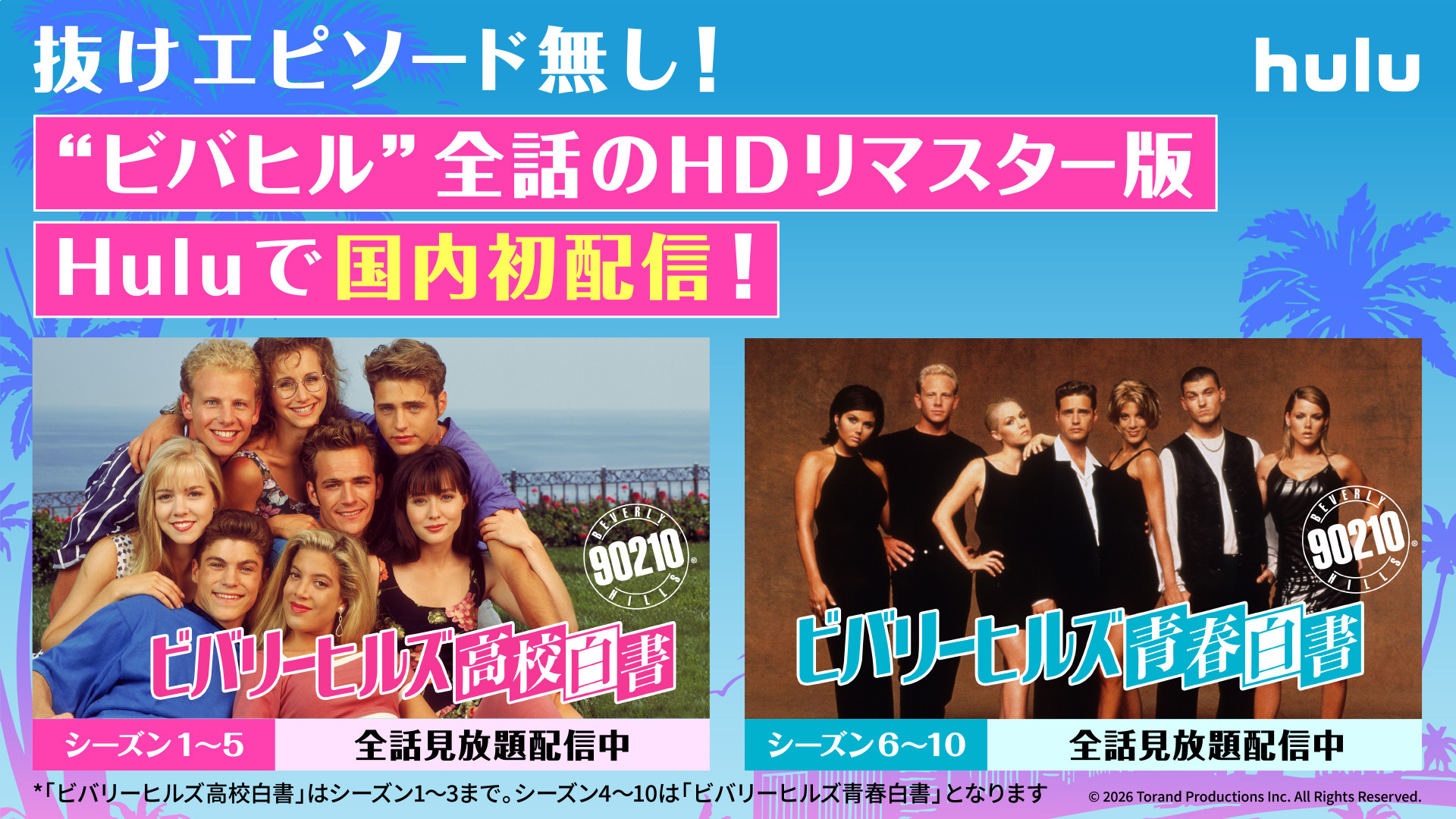 世界各地で社会現象を巻き起こした「ビバリーヒルズ高校白書/青春白書」。ダーレン・スターによって制作され、青春ドラマの金字塔となった“ビバヒル”がHDリマスターで鮮やかに蘇ります。「ビバリーヒルズ高校白書/青春白書」HDリマスター版の全シーズンをぜひHuluでご堪能ください。