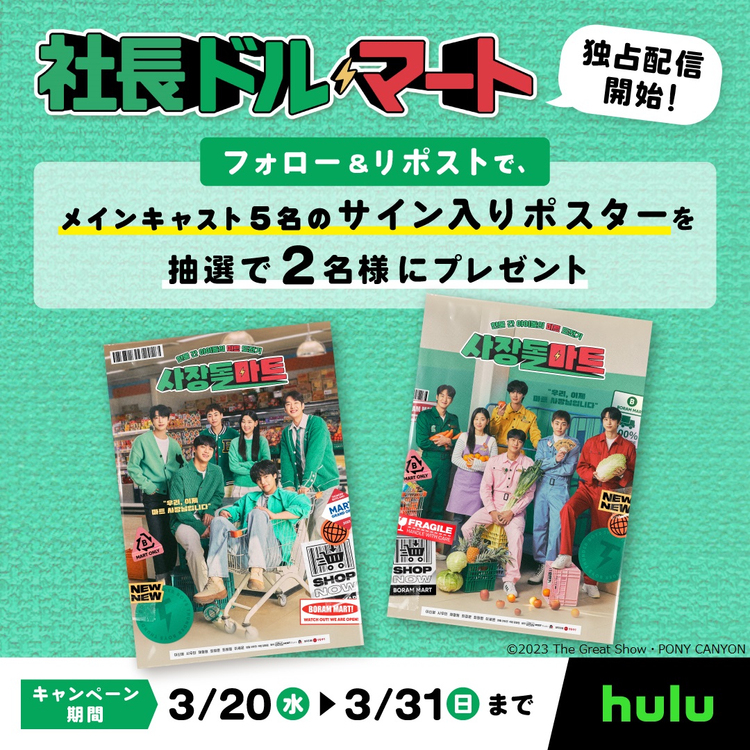 Huluでは「社長ドル・マート」を全話独占配信中です。 |
