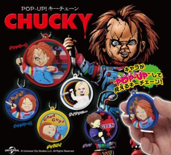 | ◆『チャッキー』商品化情報 タカラトミーアーツ 「POP-UP!キーチェーン CHUCKY」 チャッキーたちが“POP-UP(飛び出して)”して見える新感覚キーチェーン! 全国のガチャマシンで2022年7月発売予定 全5種、1回300円(税込)詳細はこちら http://www.takaratomy-arts.co.jp |