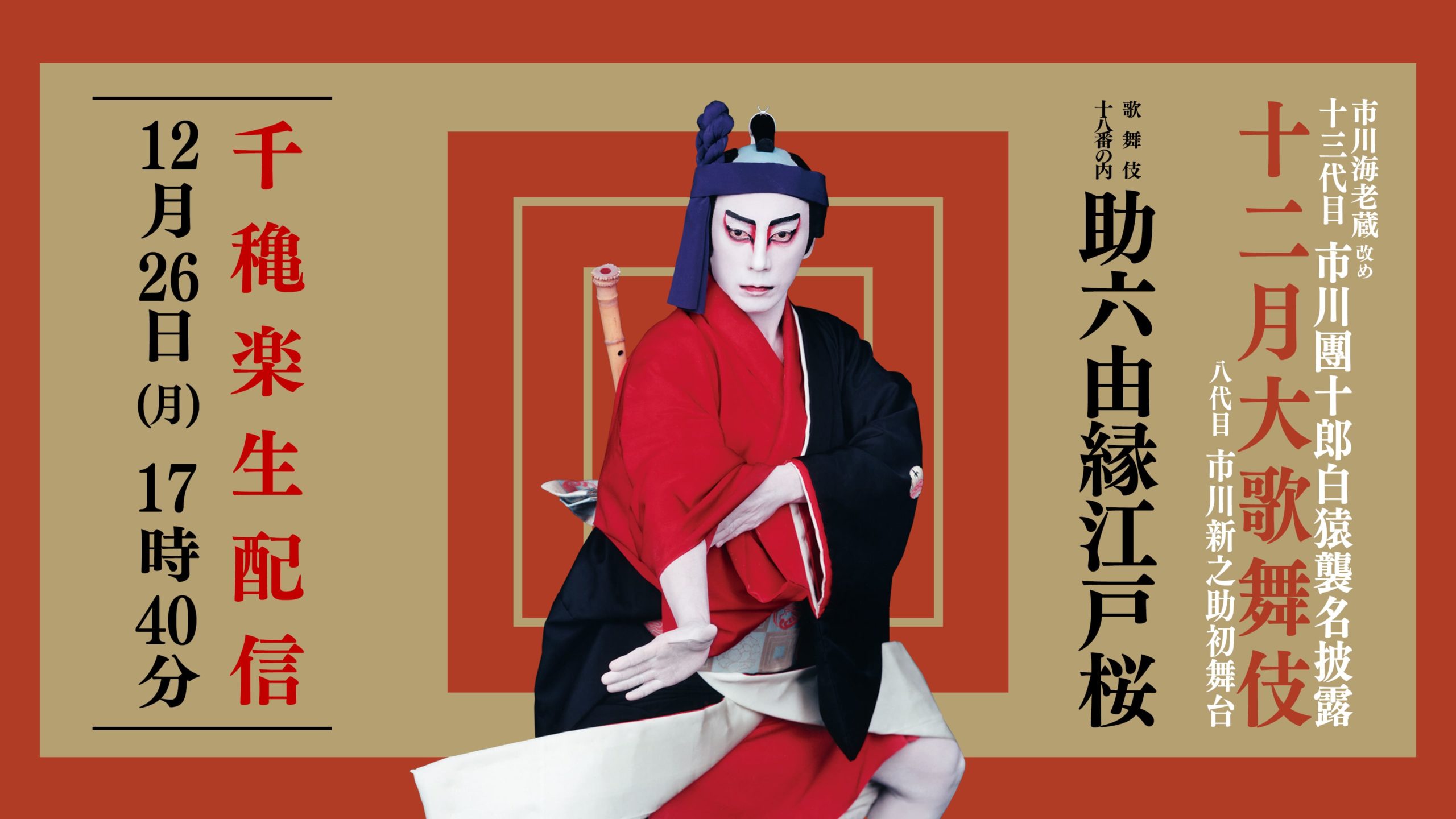 この度、「十二月大歌舞伎」千穐楽の12月26日(月)に團十郎が出演する『助六由縁江戸桜』を歌舞伎座より生配信いたします。