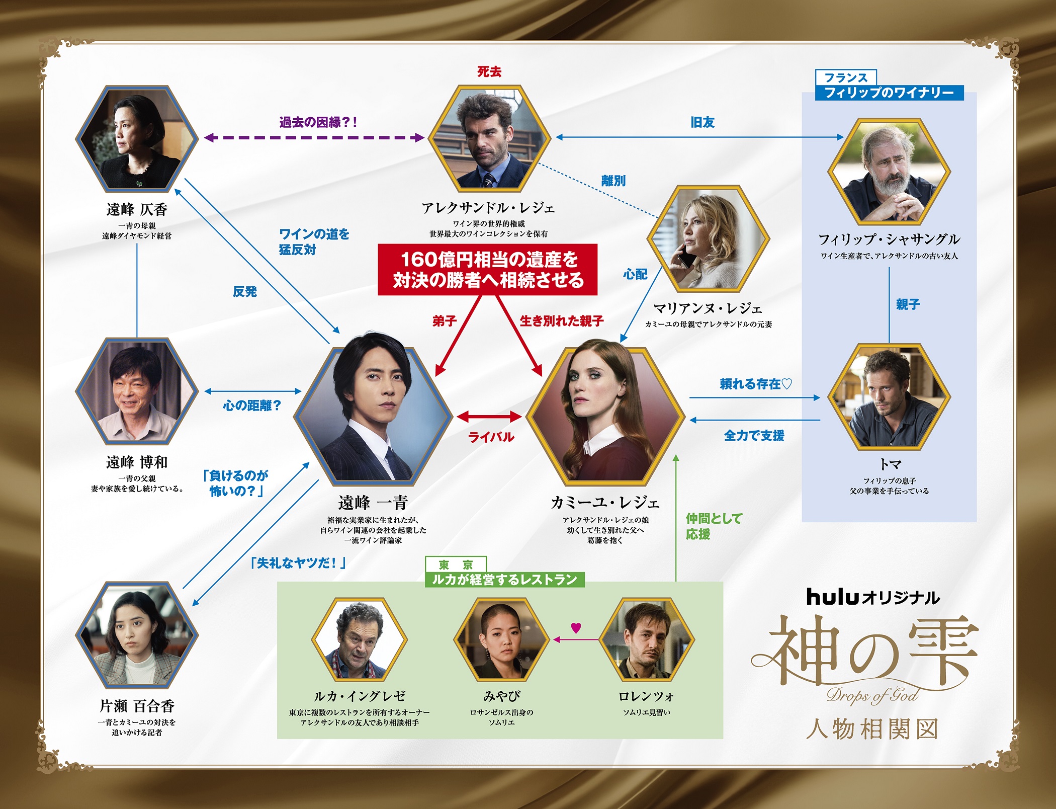 Huluオリジナル「神の雫/Drops of God」複雑な人間模様が一目でわかる キャラクター相関図を解禁