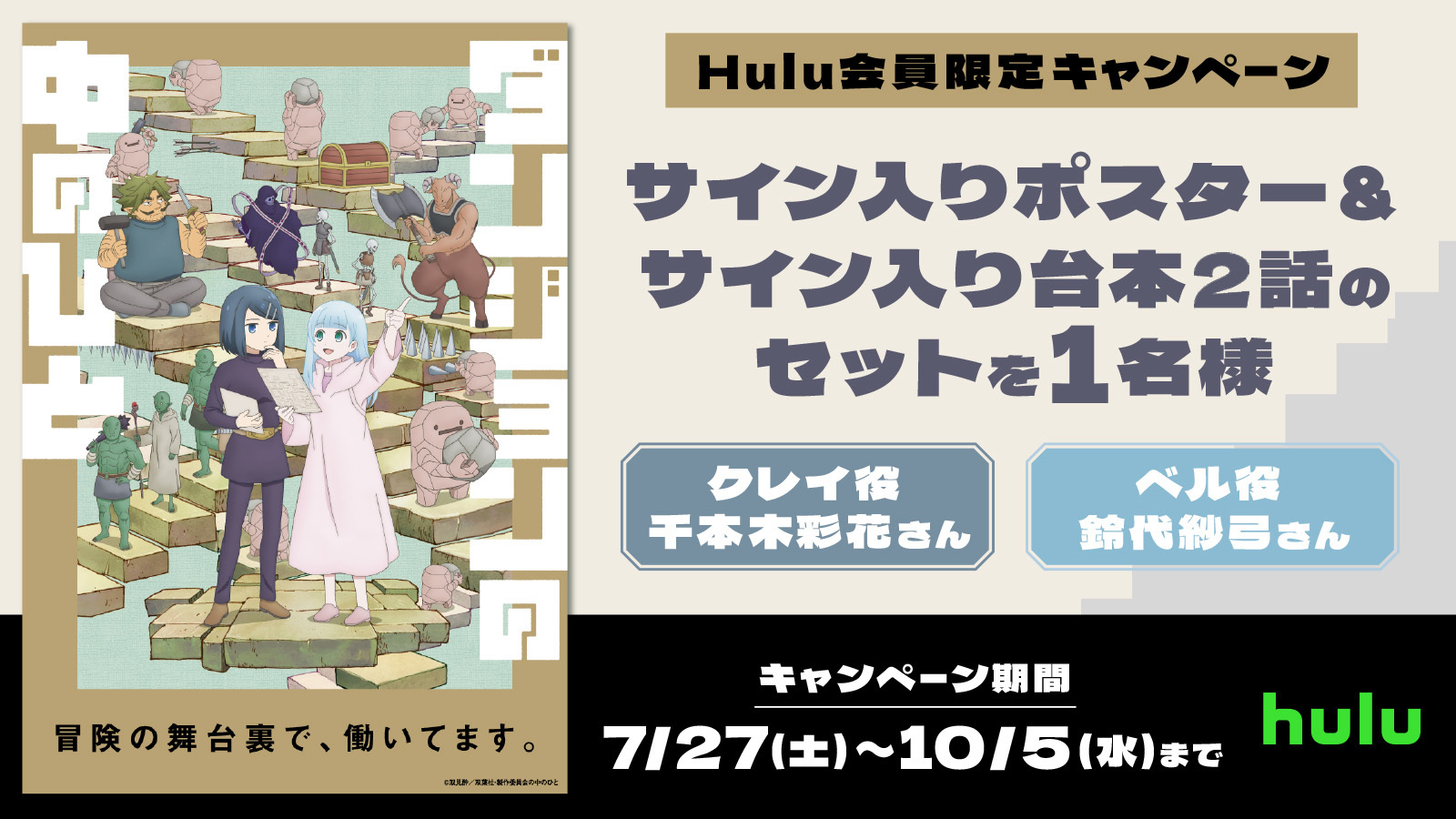 【Hulu会員限定】TVアニメ『ダンジョンの中のひと』キャストサイン入り豪華賞品プレゼントキャンペーン