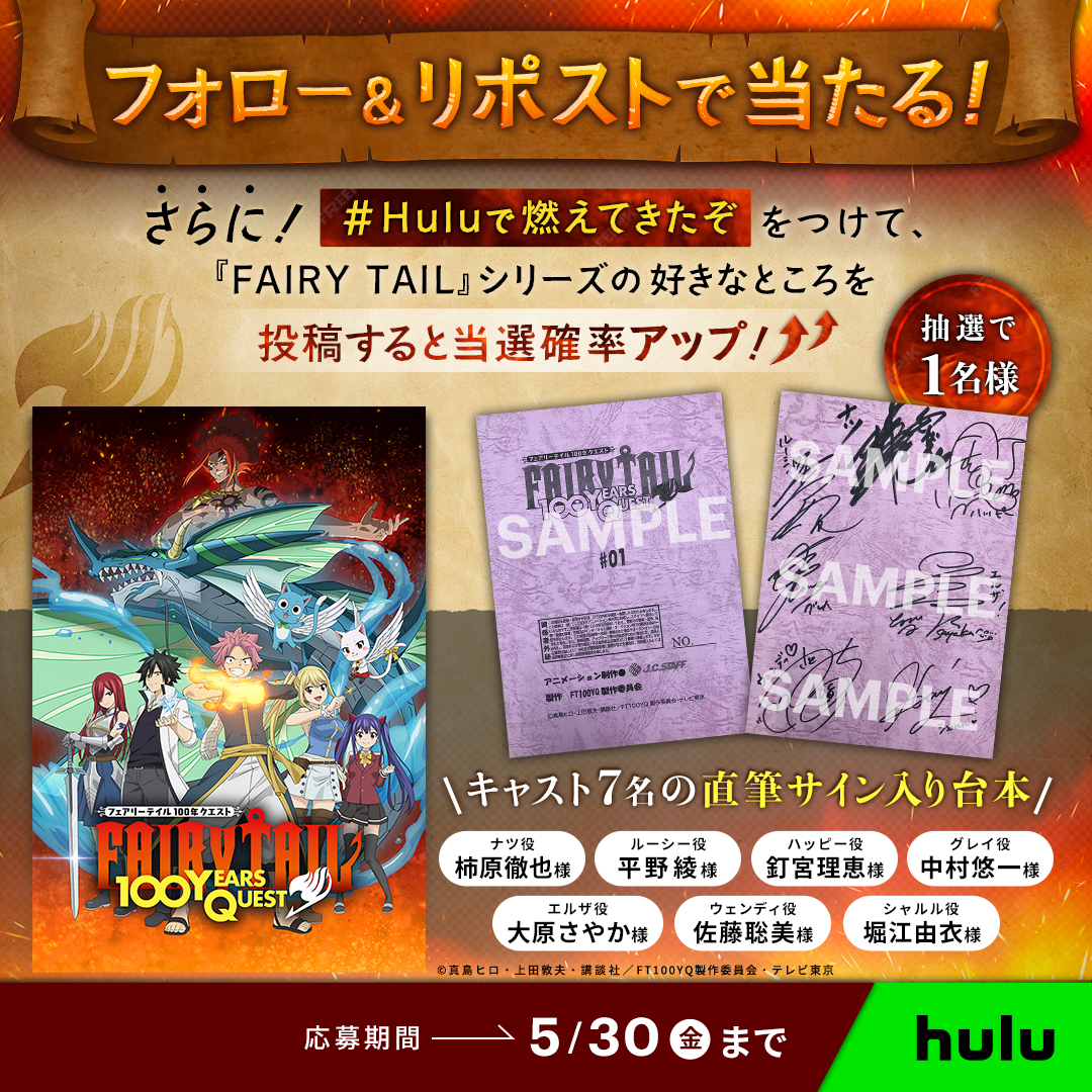 TVアニメ『FAIRY TAIL 100年クエスト』 Hulu公式Xフォロー&リポストキャンペーンを実施中