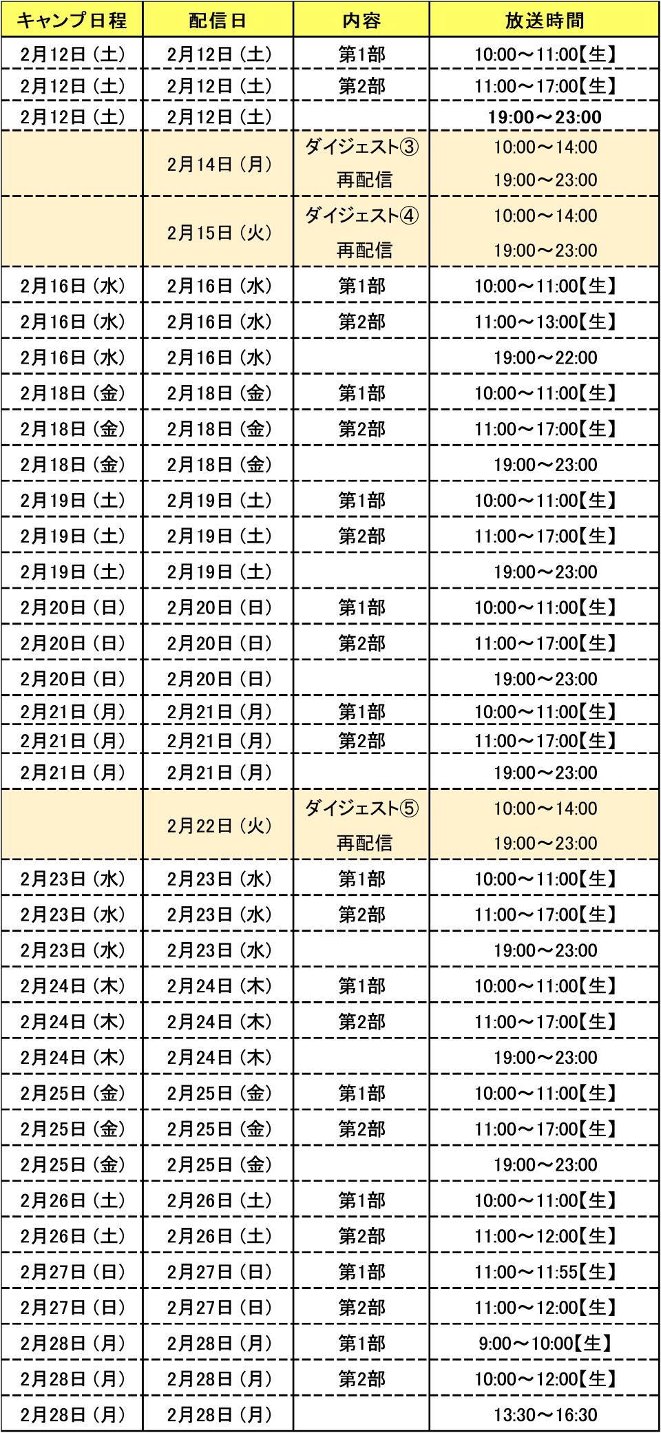 【「ファイターズキャンプLIVE 2022 ~GAORAも暴れまっせ!~」配信スケジュール】
