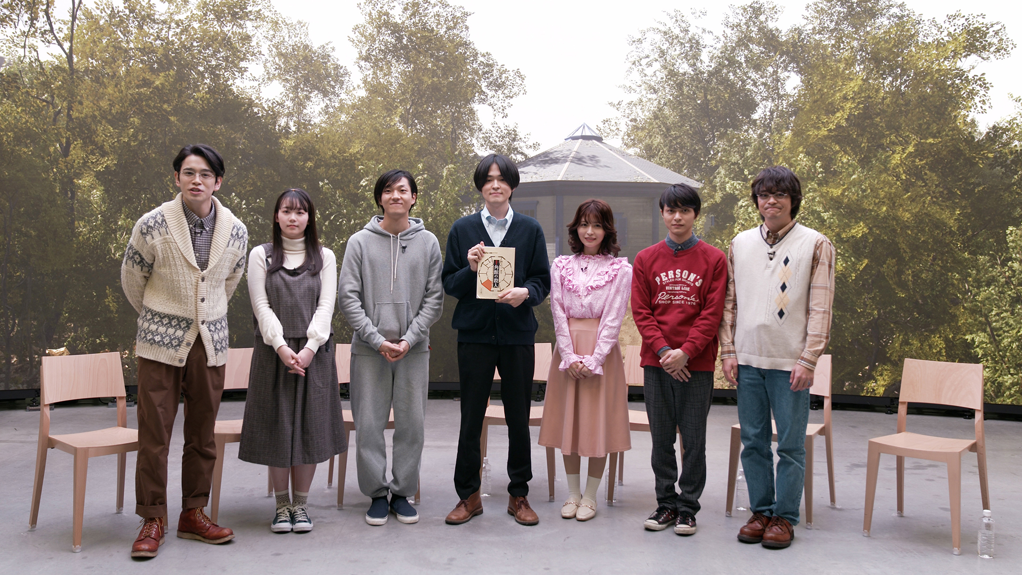 未だ衰えぬ視聴者の熱に応えるべく、満を持して、十角館を訪れるミステリ研究会・キャストが勢揃いし、“十角館の殺人スペシャル座談会”が実現!Huluで独占配信いたします。実際の撮影で使用されたスタジオで、巨大なスクリーンに映し出された十角館をバックに、約2か月間にもわたる撮影がオールアップしたばかりの望月 歩、長濱ねる、今井悠貴、 鈴木康介、小林大斗、米倉れいあ、瑠己也のミステリ研究会メンバーを演じたキャスト7人が集合。