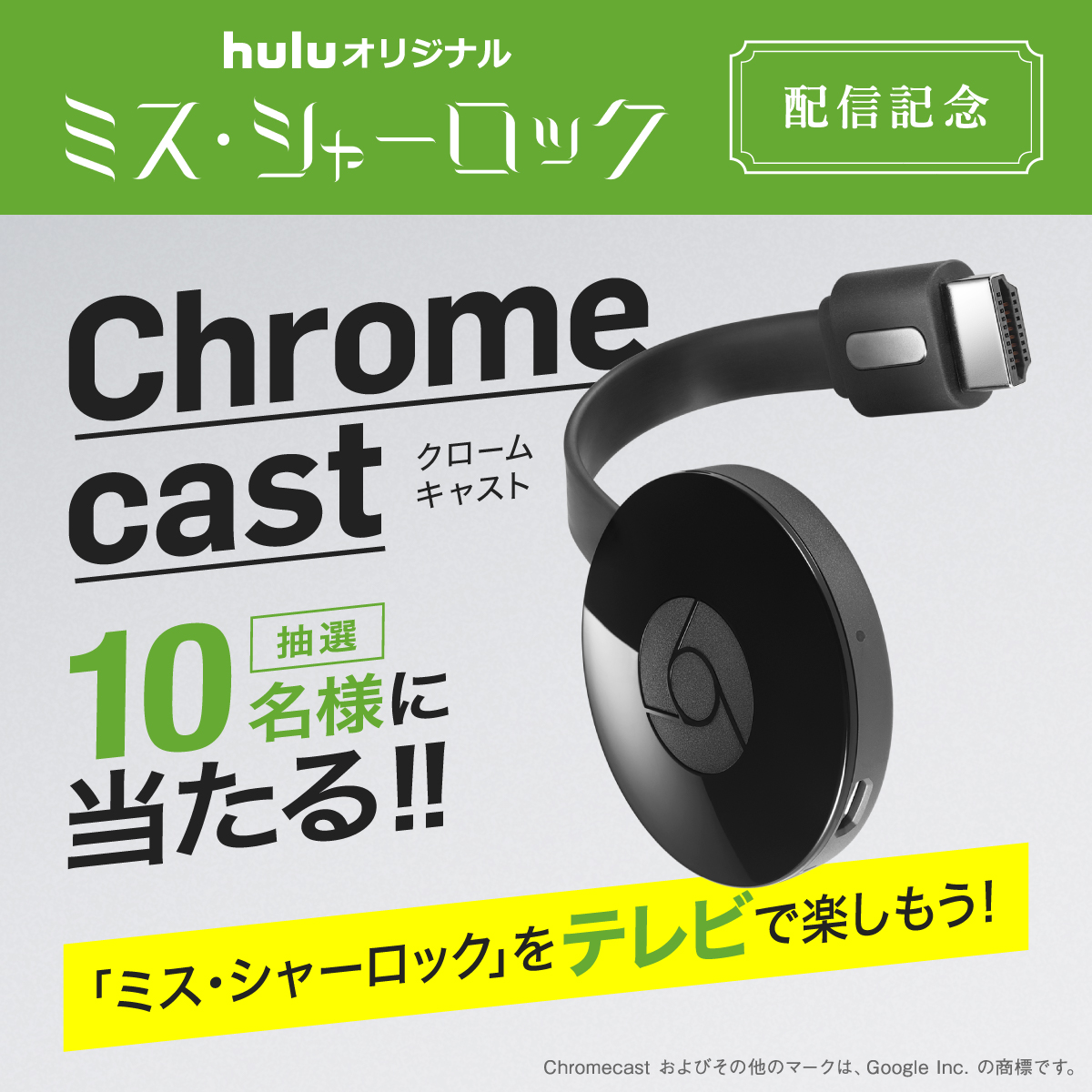 4/27(金)からのHulu×HBO Asia共同製作ドラマ『ミス・シャーロック』の世界19カ国同日公開を記念して、抽選で10名様に、Google「Chromecast(クロームキャスト)」をプレゼント!