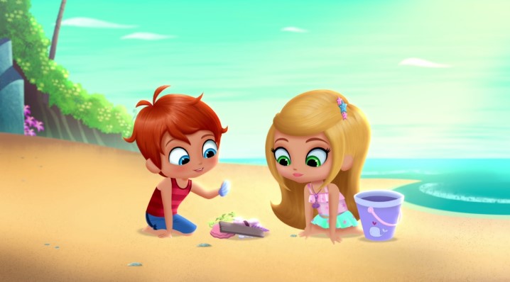 浜辺にある宝石(貝など)で、アクセサリーを作ろうと思っていたリア。その宝物でいっぱいのビーチバケツが海に流されてしまう。困った時は、シマーとシャインにお願い!もっと沢山の宝石を探しに、宝の地図を持ってリア、シマーとシャインが冒険に出発!キラキラ光る洞窟や海賊船に乗って、目的のものは見つかるかな?