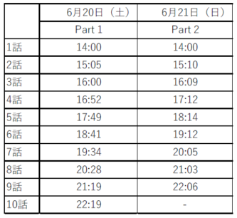 ※以下は各話のスタート時間です。スケジュールは予告無しで変更になる場合がございます。