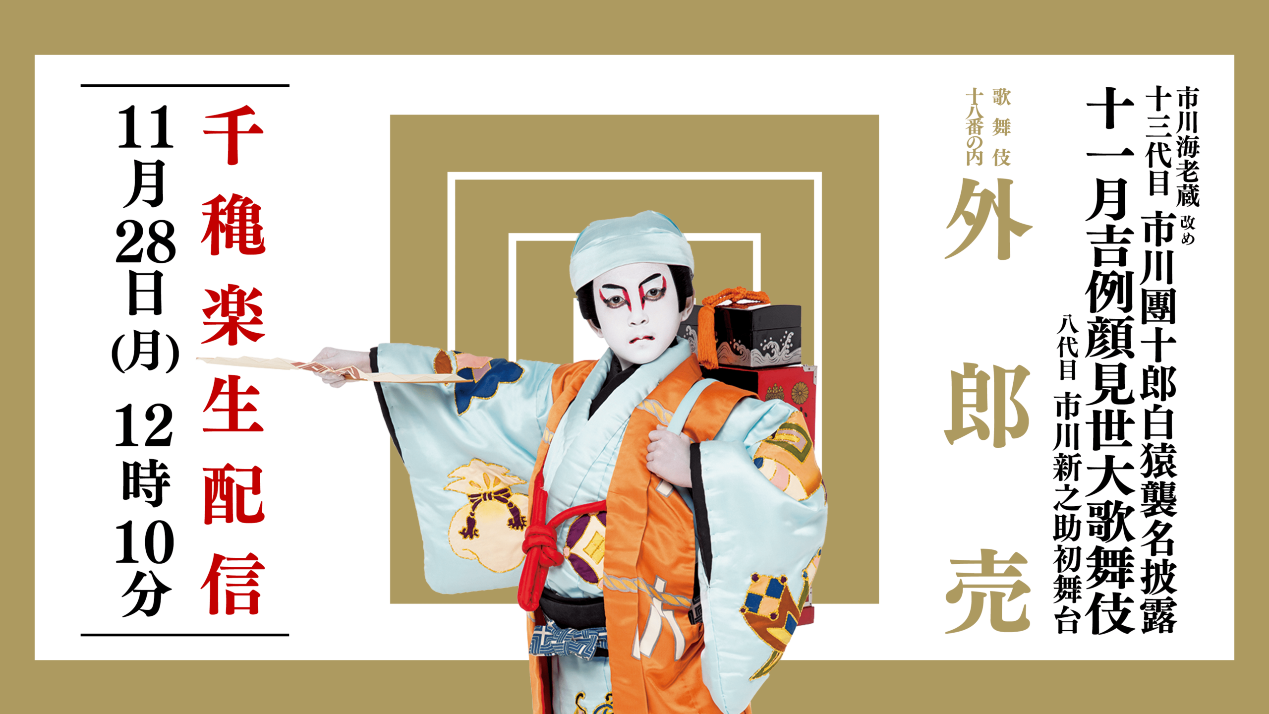 市川團十郎白猿の襲名に伴い、息子の堀越観玄も市川新之助として初舞台を踏み、市川家所縁の芸の数々をみなさまへ披露致しておりますが、その千穐楽に、新之助が出演する『外郎売』を生配信することが決定しました。