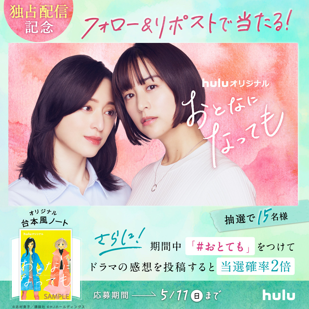▼プレゼントキャンペーン詳細▼ 【応募方法】 Hulu公式X(Twitter)をフォローして対象の投稿をRepost(RT) さらに! ハッシュタグ「#おとても」をつけてドラマの感想を投稿すると当選確率2倍 ※1投稿につき1度のみ当選確率が2倍になります 【応募期間】 2025年5月11日(日)23:59まで 【賞品】 Huluオリジナル「おとなになっても」 オリジナル台本風ノート× 15名様 【ご注意事項】 ・当選された方にのみ2025年5月下旬までにX(Twitter)のDMをお送りさせていただきます。 X(Twitter)のDMでの当選通知後、指定の期間内にご連絡がつかない場合は、当選破棄とみなし他の応募者様の中から再抽選となります ・賞品の譲渡や販売は禁止いたします ・賞品の発送は日本国内に限ります ・13歳以下の方はご応募いただけません ・賞品の返品・交換はいたしかねます ※小さな傷等が入っている場合がございますが、返品・交換は出来かねますので、あらかじめご了承ください ・抽選は、当キャンペーン運営事務局が厳正に行います。当選や抽選の基準についてはお答えしかねます ・Huluサービスに付随して実施する各種懸賞キャンペーンは、Apple、Googleその他、当社以外の事業者と一切関係ありません |