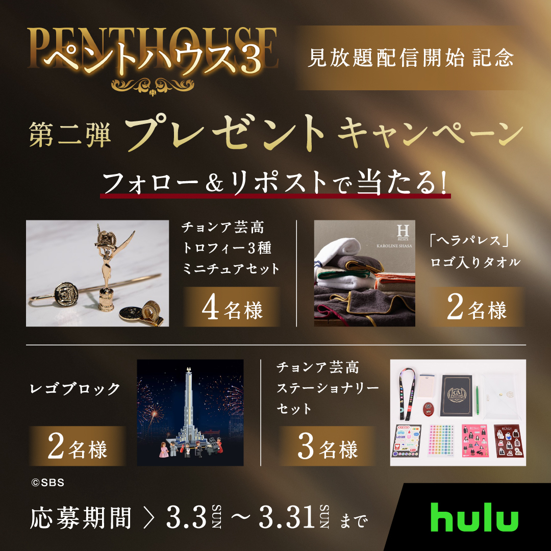 Hulu公式Xで「ペントハウス」オリジナルグッズ(非売品)が当たる