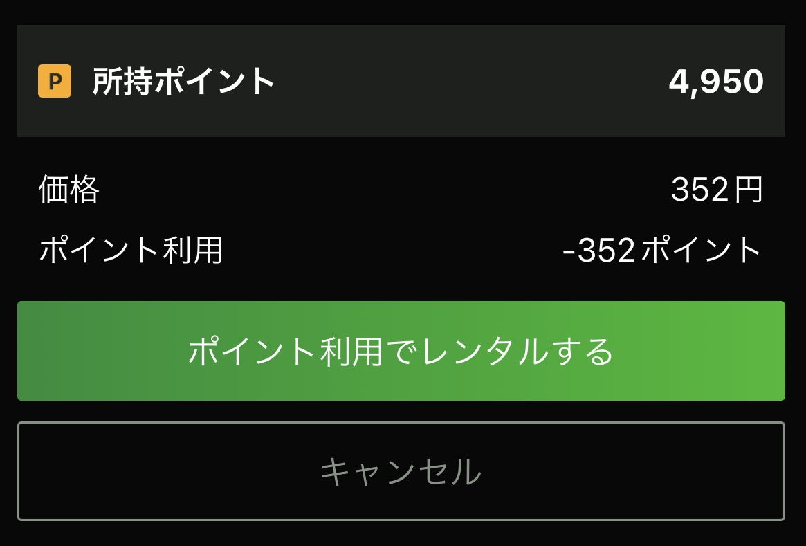 (例)WEBサイトで500ポイント、iPhoneで100ポイントを購入し、Androidタブレットで600ポイント分の作品をレンタルすることができます。