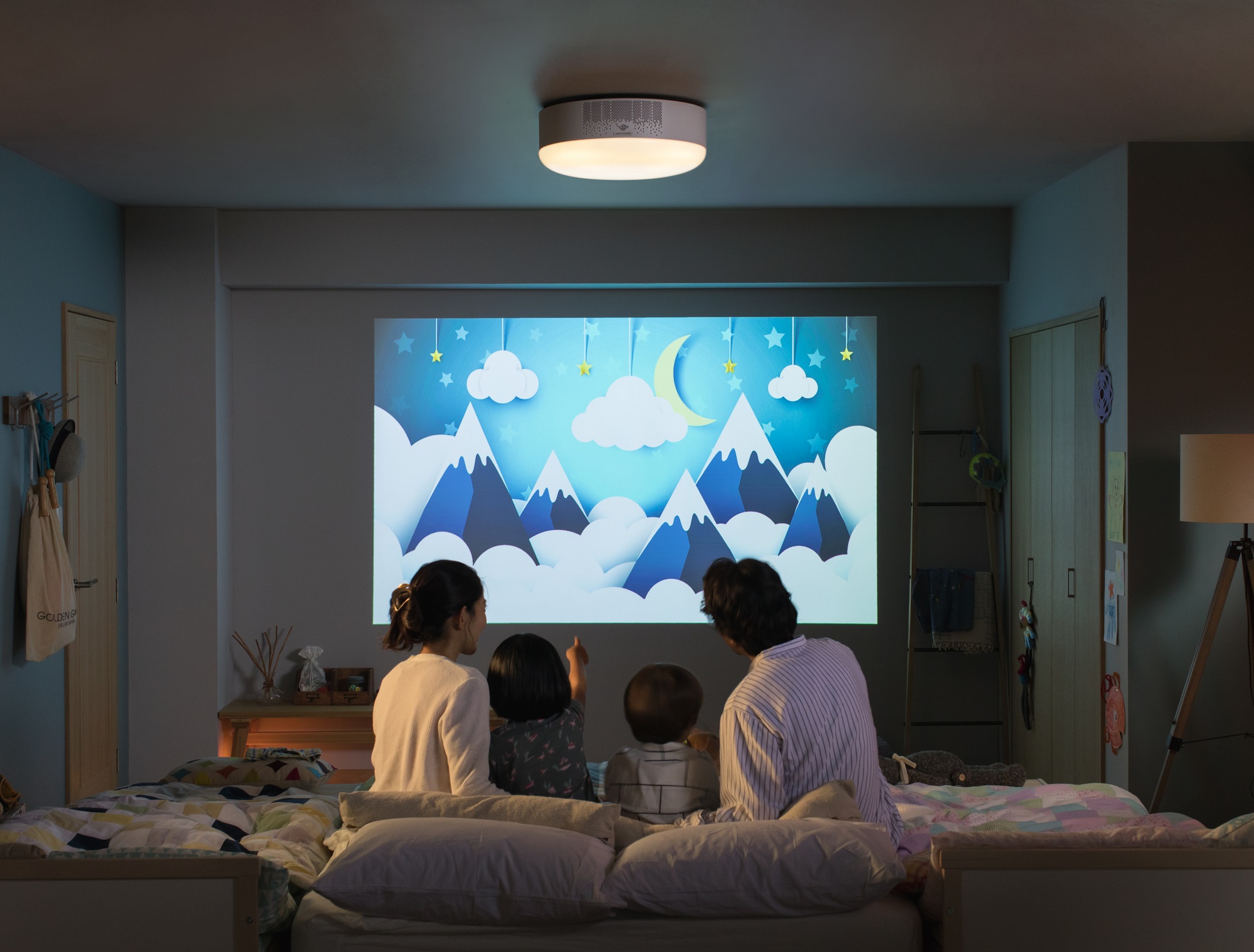 popIn Aladdin(ポップイン アラジン)は、多彩なコンテンツを搭載した世界初のプロジェクター付きシーリングライトです。