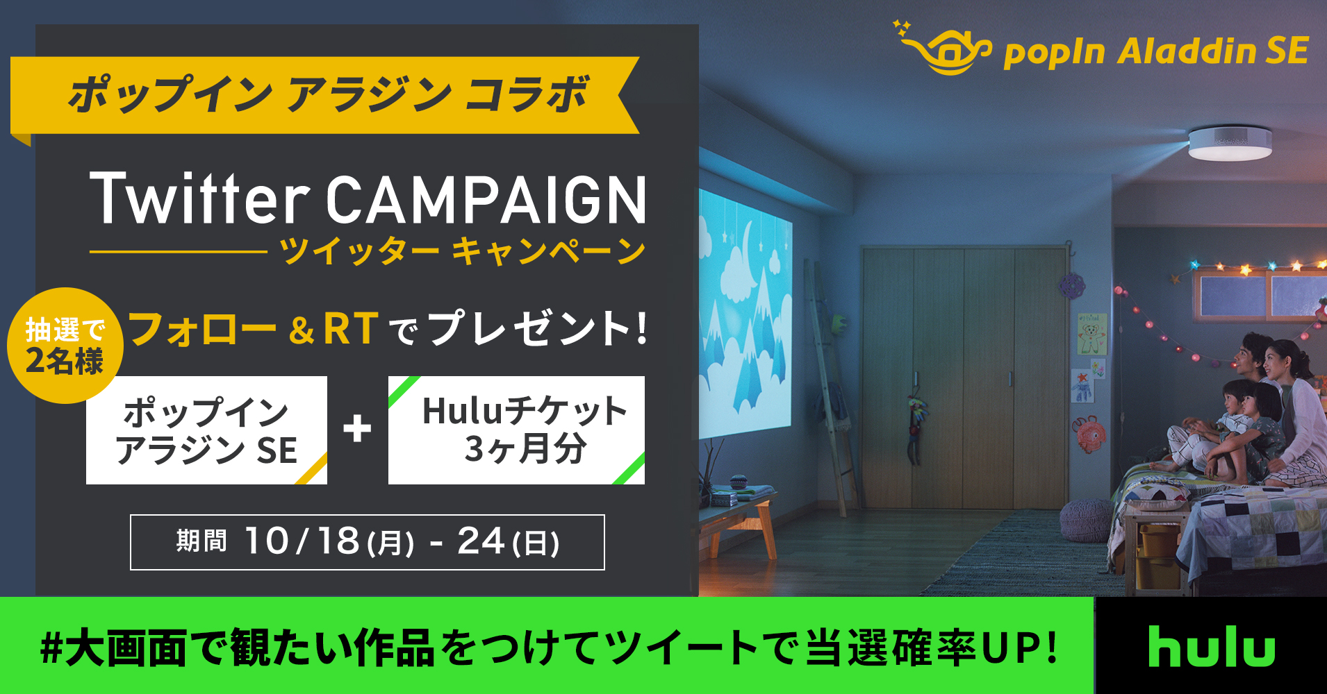 ポップイン アラジン SEとHuluチケット3ヶ月分 2名様