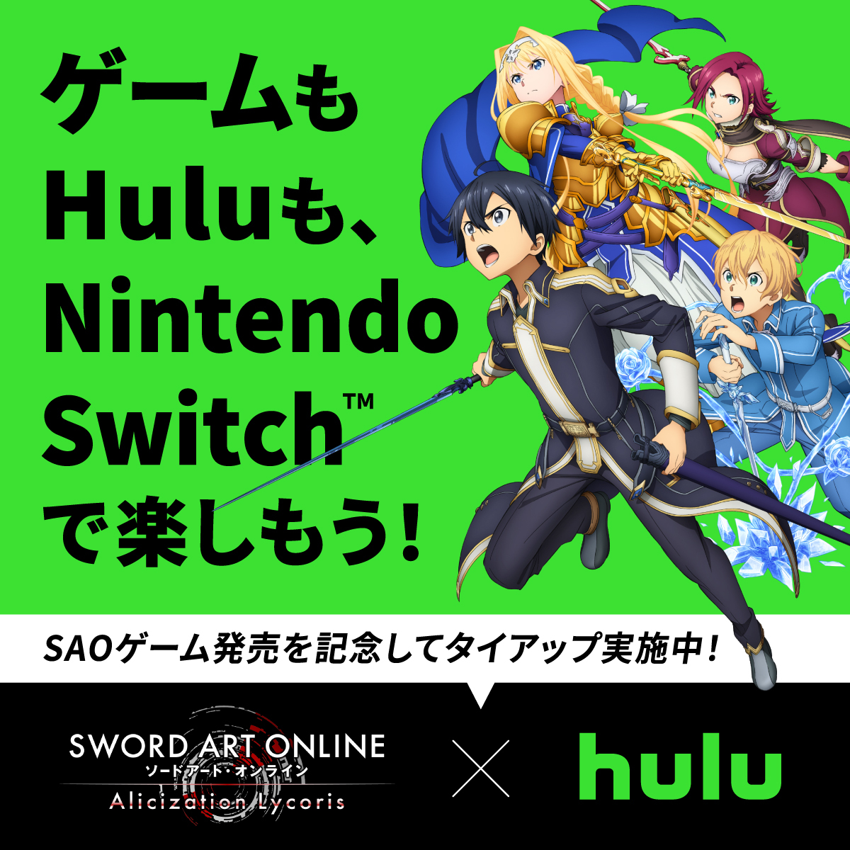 ゲームオリジナルの 「アリシゼーション」編の物語をプレイするのに合わせて、Nintendo SwitchでHuluアプリをダウンロードし、アニメの「アリシゼーション」編も楽しんでみてはいかがですか♪