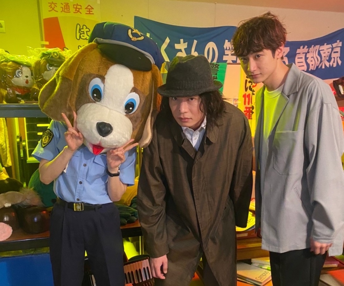 今回、そんな香川を演じる小関の「一日警察署長」の制服姿を初公開。凛々しくさわやかな姿を披露しています。さらに、儀藤役の田中と、作中に登場するキャラクター「トイマッポくん」の着ぐるみの頭を付けた小刀祢役の山本舞香との、キュートな3ショットも初公開。撮影現場の和気あいあいとした雰囲気が伝わってくるオフショットになっています。