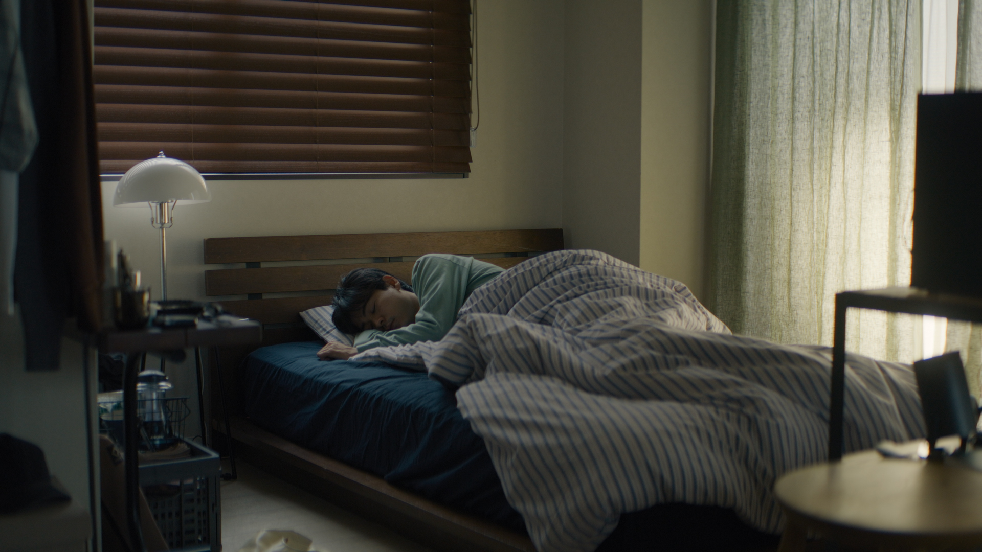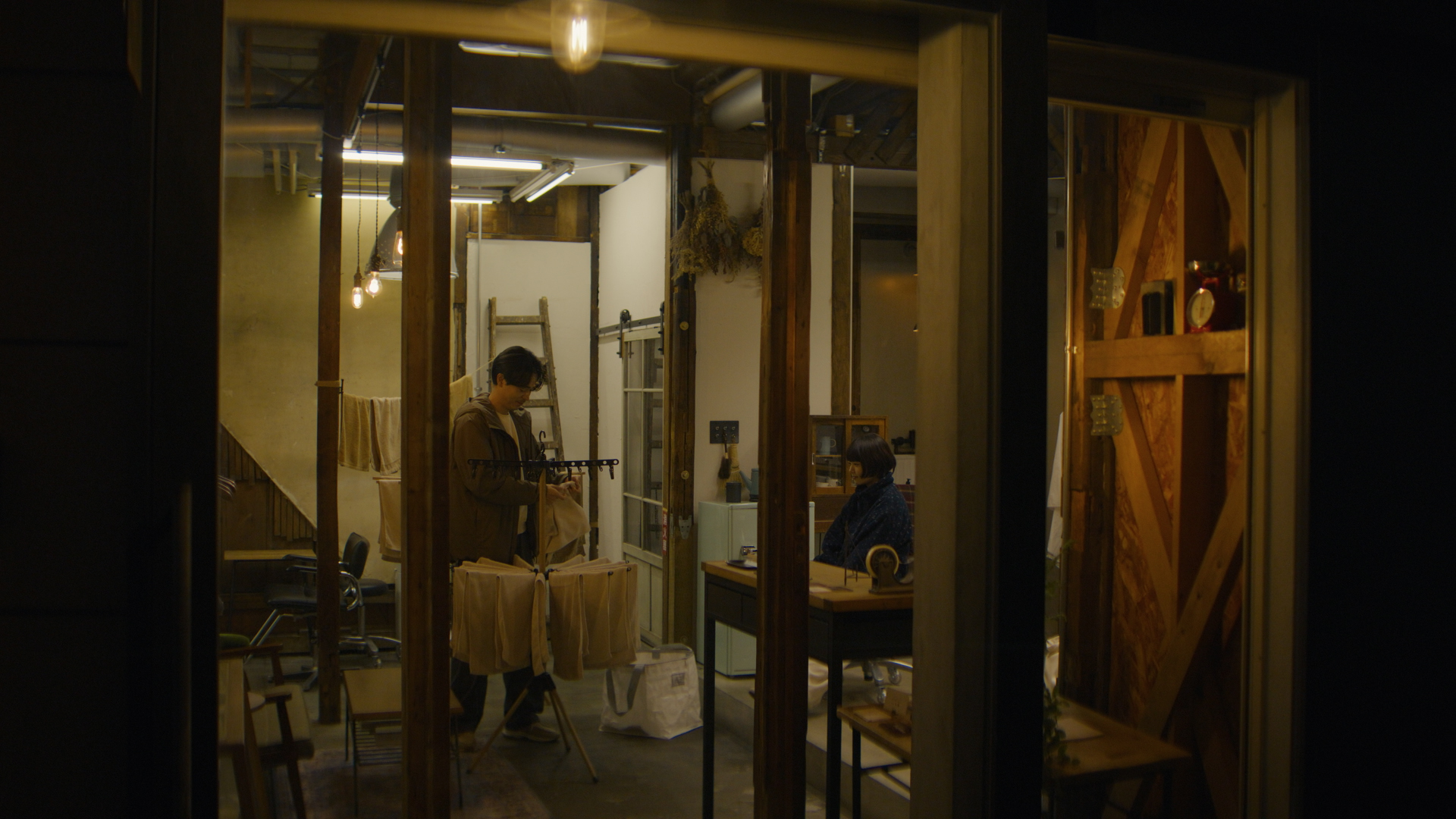 例えば、第1話の本編では、初めて訪れたゆきおの家に泊まった⽂菜が、⽬を覚まして置き⼿紙を読んでいる朝の⾵景が描かれていましたが、ディレクターズカット版ではその少し前の時間=早朝、先に起きたゆきおがソファで寝ている⽂菜を⾒つめる瞬間。そして、⽂菜宛の⼿紙を書いている場⾯が追加されています。また、⽂菜と⼭⽥の居酒屋での会話も追加。焼き⿃を⾷べながら、⽇本酒を注⽂する際に起きたコミカルなやりとりなども必⾒です。