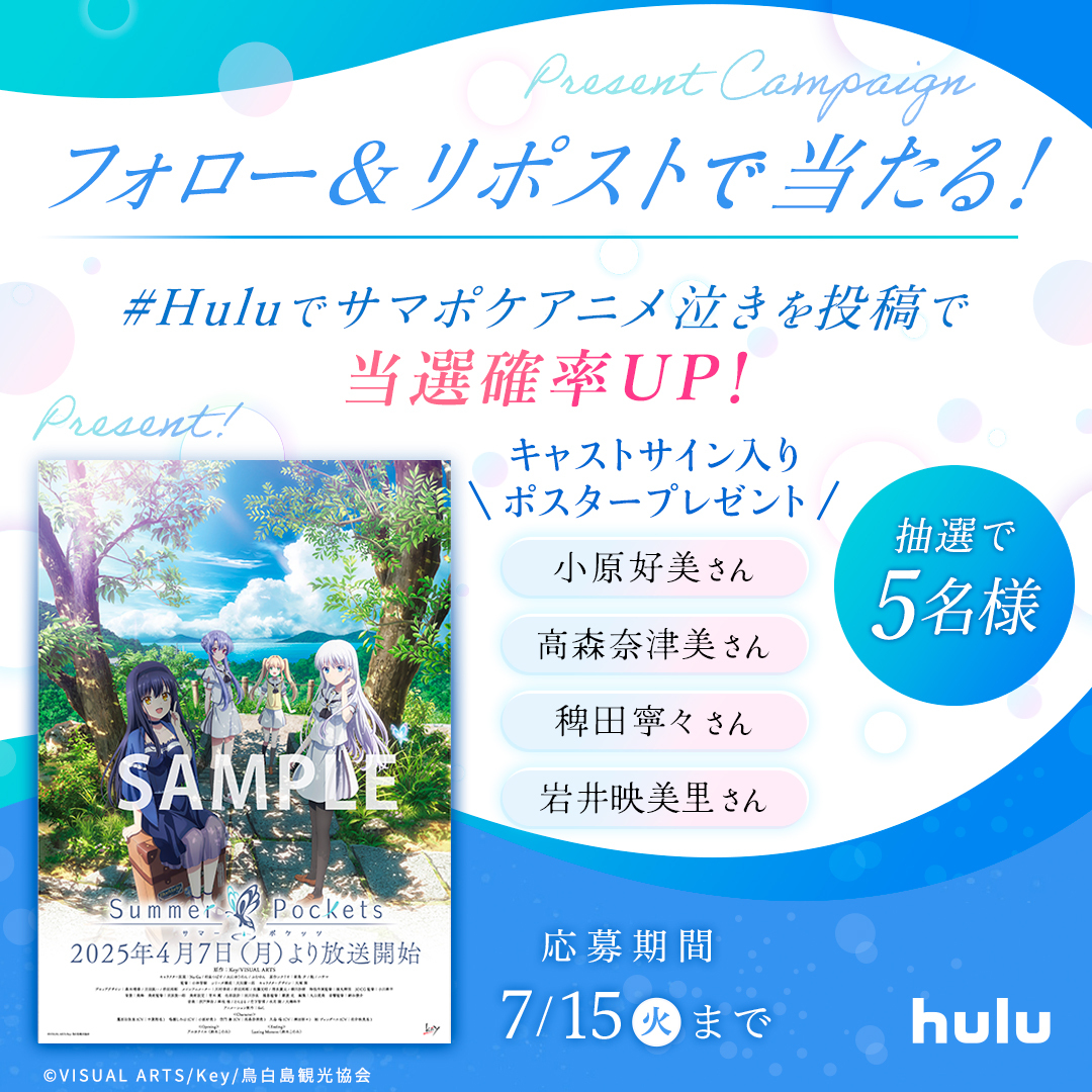 TVアニメ『Summer Pockets』Hulu公式Xフォロー&リポストキャンペーン!