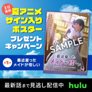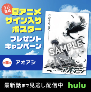 Huluで配信中のアニメ3作品の「サイン入りポスター」プレゼントキャンペーンを3日連続開催!