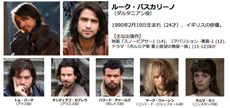 ポン・ジュノ監督の『スノーピアサー』(’14)公開時に、ホームページやプレスにクレジットされていないにも関わらず、「あのイケメンは誰!?」と話題となった新鋭・ルーク・パスカリーノ。日本でも「マスケティアーズ/三銃士」配信がスタートし、SNSなどで「イケメン!」などの投稿が急増。さらにメディアでのイケメン特集などでも取り上げられ、ブレイク必至。