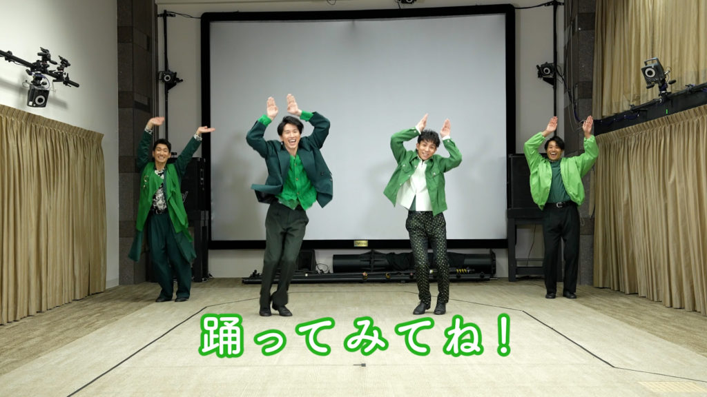 モーションキャプチャで、自分が動いた通りに反応してくれるフーとルーがかわいくてずっと遊んでました(笑)本当にそのまま反映されるので、実際に動くフーとルーの動きを見て、「こう動いた方がいいかな。こっちの方がいいかな。」と試行錯誤しながらダンスや動きを調整していきました。ダンスはもちろん、ちょっとした仕草も拘ったので、注目して欲しいです。 …って文章ではよく分からないですよね。僕たち4人でレクチャー動画も撮影したので、是非そちらを参考にしてみんなで楽しく踊ってみて下さい!