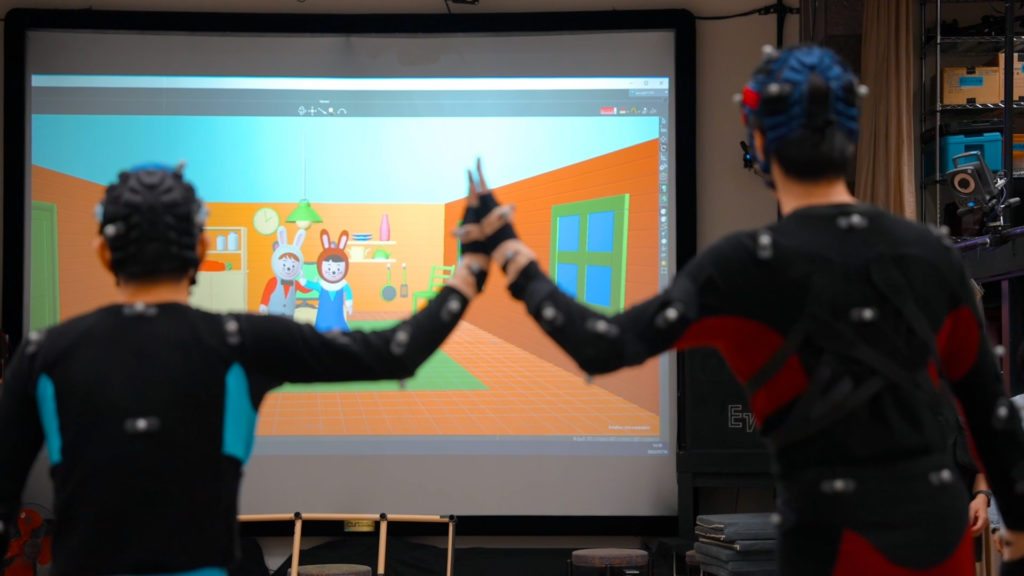 ウサギのフーとルーは、自分の好きな作品を観るためにテレビ画面の取り合いをしているのですが、最後には二人で一緒にHuluを楽しむ、というコンセプトのCMで、どちらの作品を観るのかダンスをしながら取り合いをしている姿がとてもキュートになっています。このキュートな姿でありつつ、二人がパフォーマンスするダンスはどちらもキレキレです。その理由は、今回のうさぎダンスは世界的に活躍する人気ダンスパフォーマンスグループ「s**t kingz」が担当しているからです。ダンスの振り付けをし、実際に「s**t kingz」のNOPPOさん(フー)とkazukiさん(ルー) が*モーションキャプチャを付けて、うさぎダンスを披露しています。