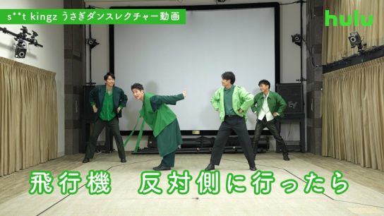モーションキャプチャでの撮影の後、「ちょっとした頷きもかわいい!」「フーとルーのファンになった!」と語ったs**t kingzのメンバー。「海外ドラマ VS Huluオリジナルドラマ」を表現した第2弾の振付について、Oguriさんは「海外ドラマは、海外から飛行機に乗ってやってきたぞ!というイメージの動作で、振付を考えました。」、kazukiさんは「Huluオリジナルドラマは、手を顔の前に集めてパカッと開くことで、“ここでしか観られないドラマをのぞき見している”ことを表現しています。」と解説。