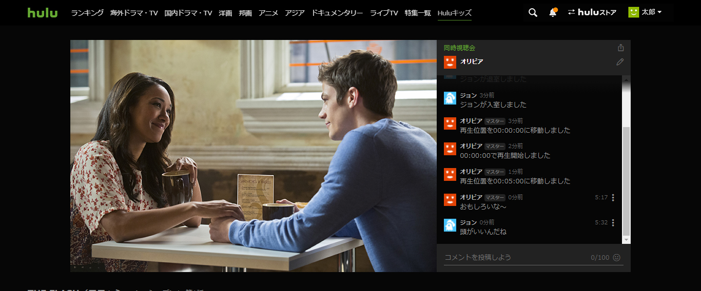 | 【チャット機能について】 ウォッチパーティ機能とは別に、会員であればどなたでも視聴可能なライブ配信作品を中心にチャット機能も搭載しています。HuluとHuluストアでライブ配信をする作品の一部で実施しています。同じ作品(スポーツや音楽ライブ、舞台など)に興味のあるファン同士が感想を述べながら観られるのでご好評頂いています。 |