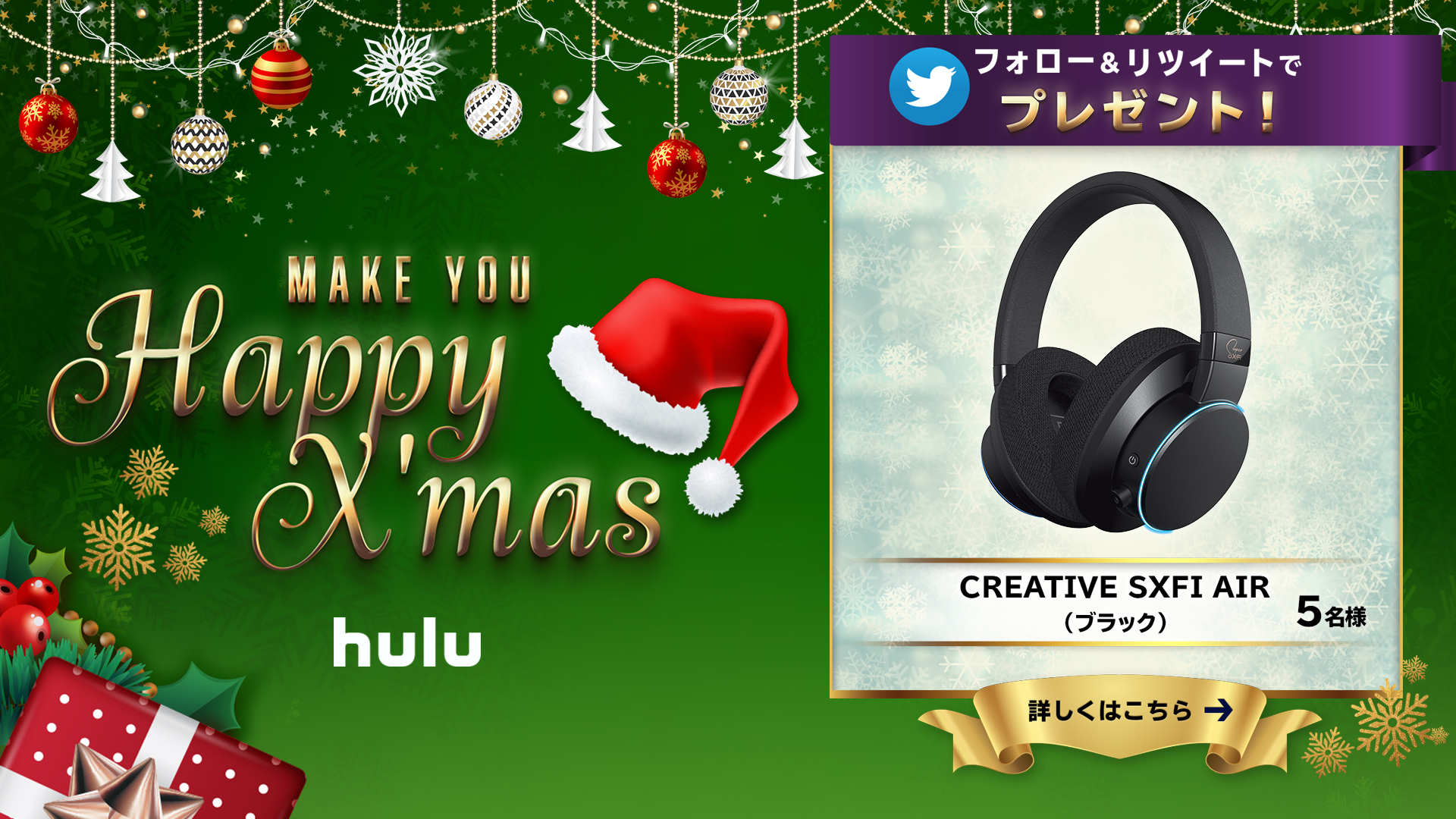 Huluで、クリスマス特集を実施中!これを記念して、Bluetooth/USB接続ヘッドホン「SXFI AIR(ブラック)」を5名様にプレゼント!!