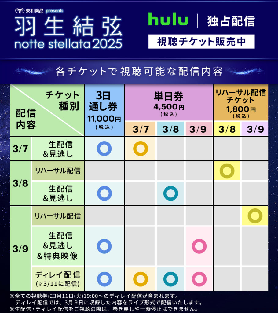 「羽生結弦 notte stellata 2025」本編の配信チケットをHuluで購入し、下記応募フォームよりご応募頂きました方